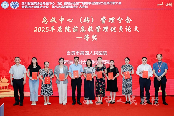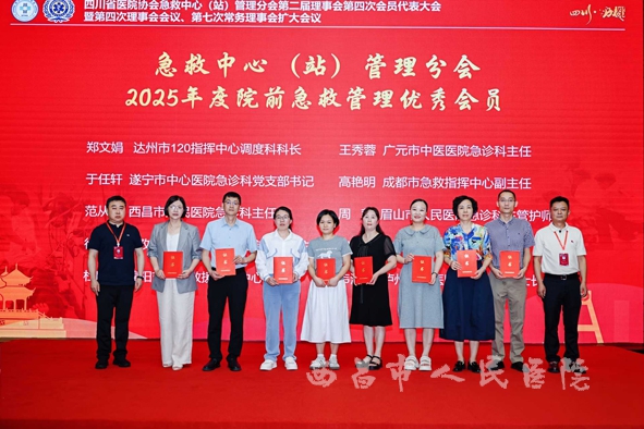 大会期间,由范从华、吕虎、王舫、左文、徐元宾同志完成的案例《5G+急诊急救大平台助力县域急诊高质量发展》获评“优秀案例奖”。是唯一一家获奖的县市级医院。该案例聚焦5G技术赋能急诊急救,探索县域急诊发展新路径,展现医院在智慧急救融合实践中的积极尝试,为区域急诊体系优化提供参考,被认定为西部县级医院高质量发展的标杆,建议广泛推广。吕虎、范从华、王舫同志撰写的论文《党建业务深度融合促进县域医共体急诊高质量发展创新路径研究》,荣获“优秀论文奖” 。是本次大会唯一一篇涉及党建的论文,党建+业务,引领紧密型医共体急诊发展创新模式,将党建优势转化为急诊业务发展动能,为县域医共体急诊建设提供理论与实践探索。急诊科主任范从华同志深耕急诊近30年,2024年享受国务院政府特殊津贴,获得2024年全国志愿服务“四个100”最美志愿者,成为四川省急诊医学的优秀典型代表。凭借在院前急救管理工作中的突出表现,荣获四川省医院协会急救中心(站)管理分会“2025年度院前急救管理优秀会员”称号 ,这是对其个人在急救岗位深耕、贡献的认可,彰显个人对四川省院前急救事业作出贡献的体现。