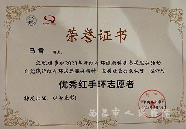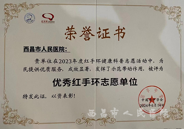 6月14日,西昌市人民医院卒中中心副主任委员、副院长陈勇带队前往北京参加由中国卒中学会举办的第十届学术年会暨天坛脑血管病会议。会上,我院荣获2023年度优秀红手环志愿者和优秀红手环志愿单位。