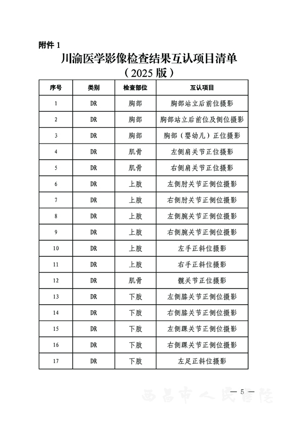 西昌市人民医院川渝两地医学影像检查结果互认项目141项、 临床检验结果互认项目81项全部纳入医院互认项目。