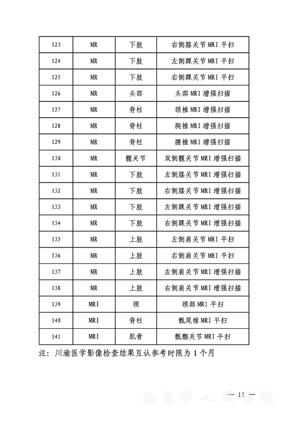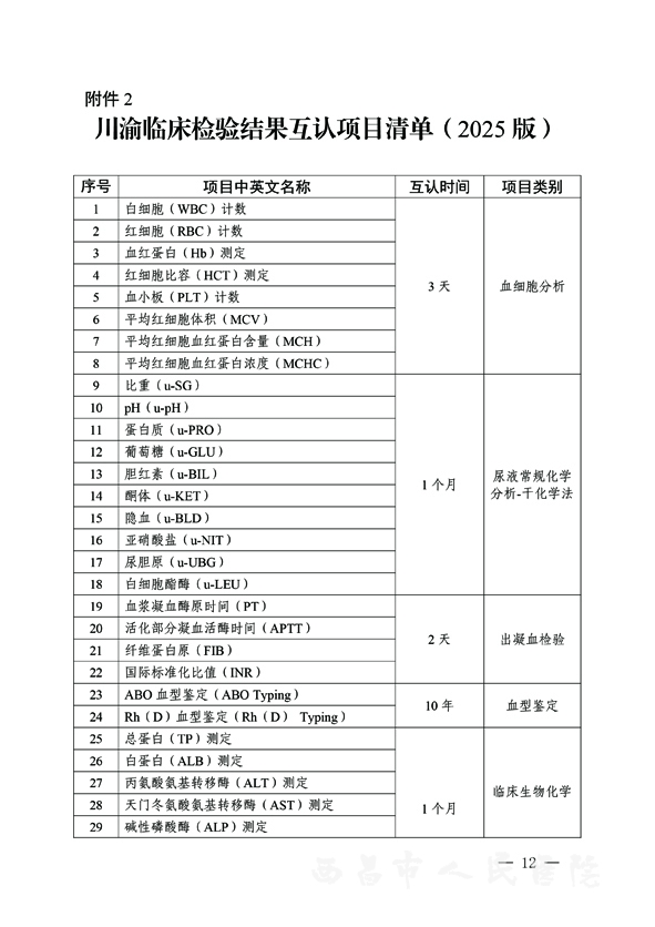 三、西昌市人民医院纳入互认的项目有哪些?
